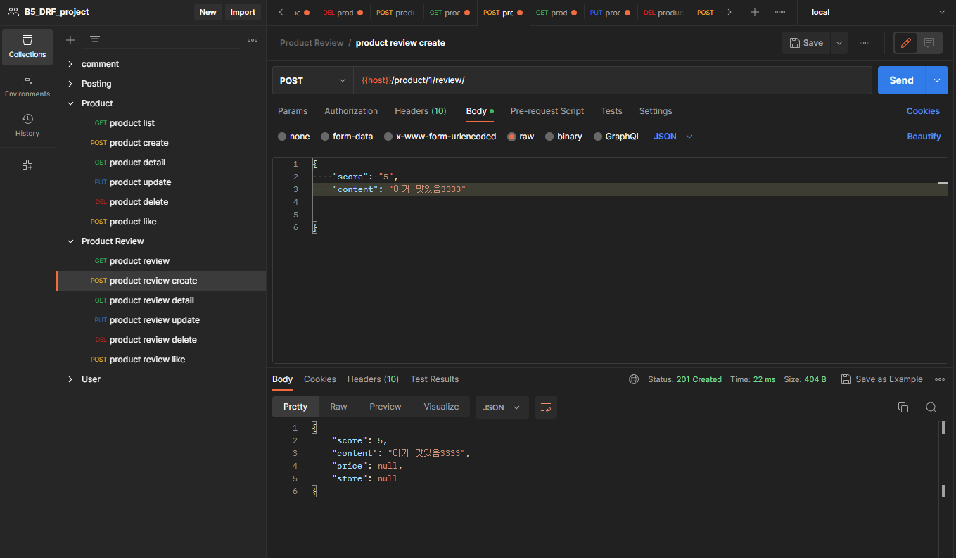 • store: 구매처 | 특정 상품의 리뷰를 등록 후 데이터를 보냄 | |