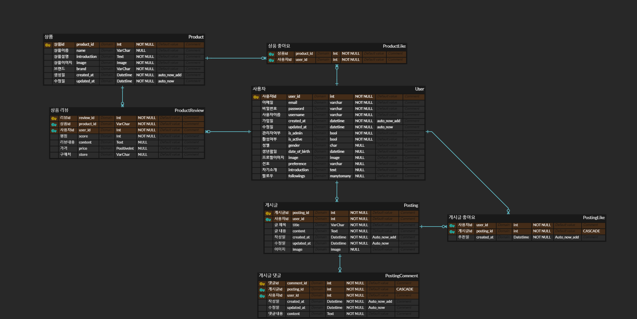 | 서지인 | UserFeedSerializer와 UserMypageSerializer 언더바_set과 related_name으로 간단하게 포스팅, 리뷰들을 다 불러올 수 있어서 마음에 든다. | 이미지 폼데이터로 보내기를 다 못한 것 어드민페이지, 포스트맨, 테스트코드에선 이미지도 수정 가능했는데 마지막에 안돼서 더 아쉽다. |