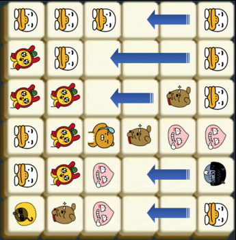 만약 판이 위와 같이 주어질 경우, 라이언이 2×2로 배치된 7개 블록과 콘이 2×2로 배치된 4개 블록이 지워진다. 같은 블록은 여러 2×2에 포함될 수 있으며, 지워지는 조건에 만족하는 2×2 모양이 여러 개 있다면 한꺼번에 지워진다.