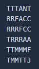 각 문자는 라이언(R), 무지(M), 어피치(A), 프로도(F), 네오(N), 튜브(T), 제이지(J), 콘(C)을 의미한다.