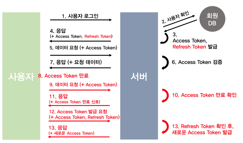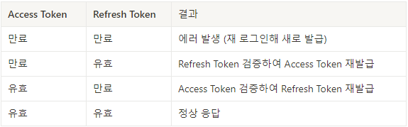 Refresh Token은 유효기간이 만료된 Access Token을 새로 발급받기 위해 사용됩니다. Refresh Token은 상대적으로 긴 수명을 가지고 있고 Access Token보다 더 안전하게 저장되어야 합니다. 사용자가 매번 로그인하여 새로운 Access Token을 받는 번거로움 없이, 안전하게 서비스를 이용할 수 있도록 합니다.