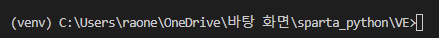 터미널 창이 순간 초기화 되면서 경로 앞에 (venv)가 붙게 된다.