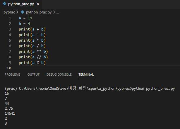 기본적인 사칙연산은 +, -, *, / 로 가능하고 추가로 몇 가지 연산이 가능하다