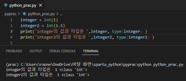 int() 를 사용해 정의하면 정수가 되기 때문에 소수점은 버린다