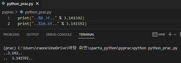 문자열 포매팅에서 소수점을 표현할때 다음과같이 사용한다