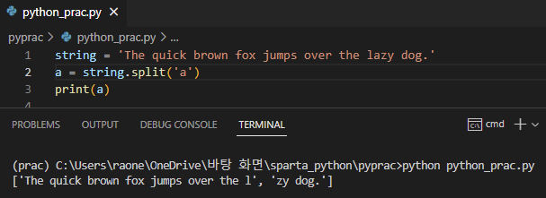 split('a') 는 'a' 문자 기준으로 나눠서 리스트로 넣어준다.