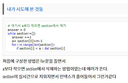 어제의 문제에서 for문을 돌리면서 section에서 삭제하는 방법이 에러가 떴었다.