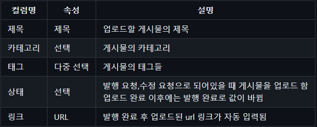 노션 테이블 페이지에서 상태 컬럼을 발행 요청/ 수정 요청으로 두면 해당 내용이