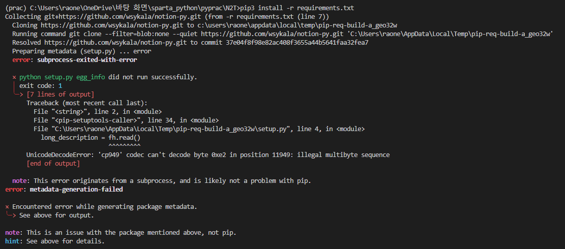 찾아보니 cp949 인코딩을 사용하는 로컬 시스템에서 UTF-8로 인코딩 된 파일을 읽을때 발생한다고 한다.