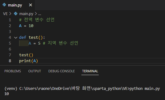 그래서 print(A)를 했을 때 전역 변수 A의 값이 출력된다