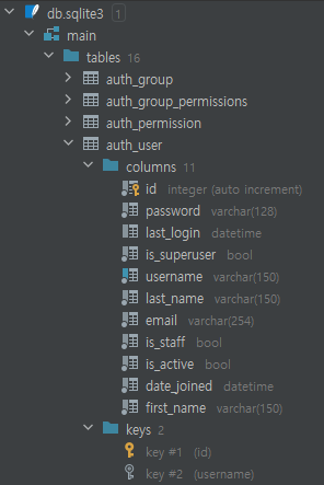 그리고 settings.py에서 유저모델을 auth.User로 한다고 장고에게 알려주면 기본 셋팅은 끝
