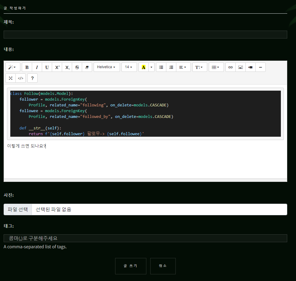 장고 프로젝트에서 <textarea>대신에 summernote를 써서 코드블록을 쓰고 싶었음